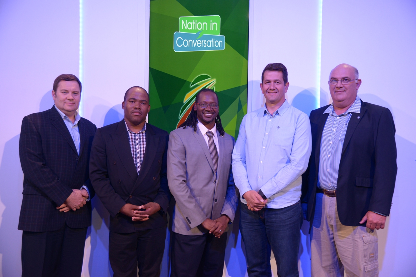 The final session of Nation in Conversation, filmed on the last day of the Nampo Harvest Day in Bothaville ended off with a lively discussion on Youth: Career Opportunities and How to Attract New Entrants to the Agricultural Sector. The session was hosted by Mpumelelo Mkhabela and the panellists included GrainSA’s Jannie de Villiers, AgriSA’s Omri van Zyl, Afgri’s Prudence Motseo, Monsanto’s Kobus Steenekamp, Johan Hudson from Nedbank, Antois van der Westhuizen from John Deere and Flint Meintjies from Senwes.